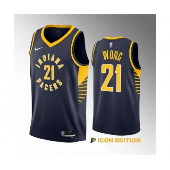 Men's Indiana Pacers #21 Isaiah Wong Navy 2023 Draft Icon Edition Stitched Basketball Jersey