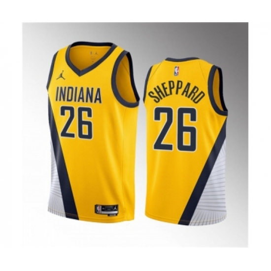 >Men's Indiana Pacers #26 Ben Sheppard Yellow 2023 Draft Statement Edition Stitched Basketball Jersey