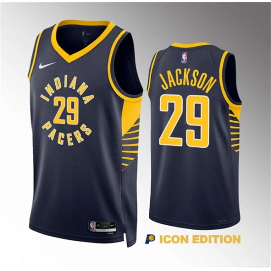 Men's Indiana Pacers #29 Quenton Jackson Navy Icon Edition Stitched Basketball Jersey