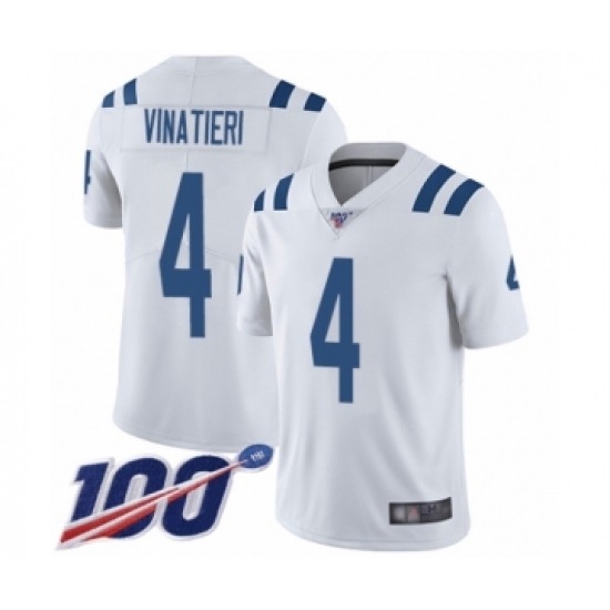 Men's Indianapolis Colts #4 Adam Vinatieri White Vapor Untouchable Limited Player 100th Season Football Jersey