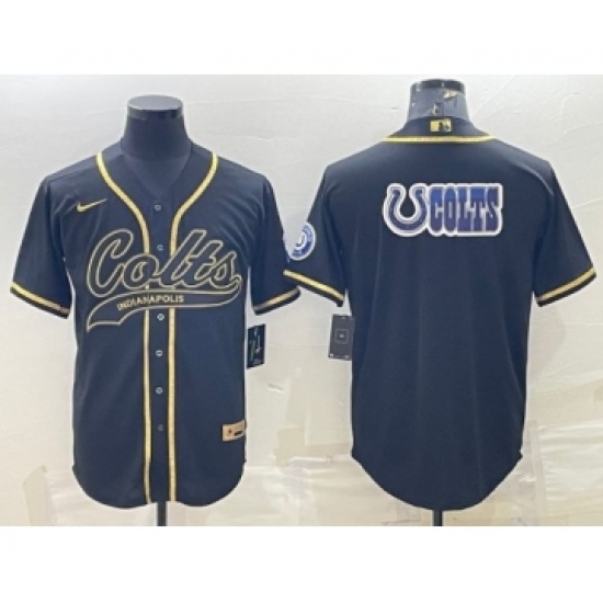Men's Indianapolis Colts Black Gold Team Big Logo With Patch Cool Base Stitched Baseball Jersey