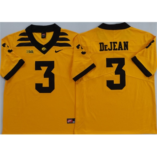 >Men's Iowa Hawkeyes #3 Cooper DeJean Yellow 2025 Stitched Jersey