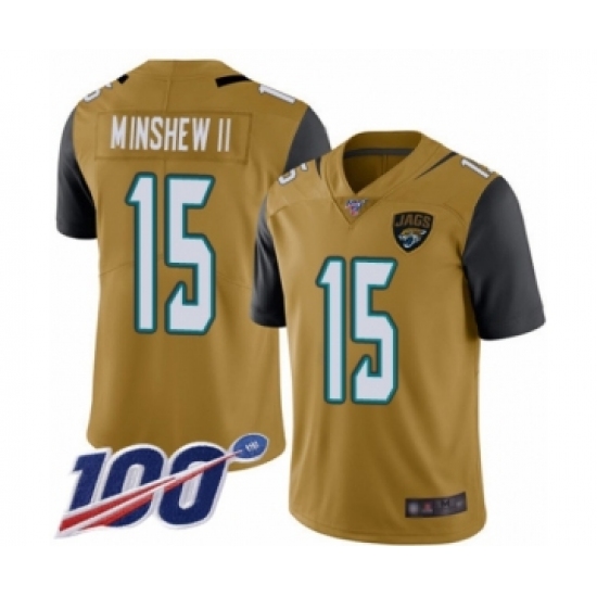 >Men's Jacksonville Jaguars #15 Gardner Minshew II Limited Gold Rush Vapor Untouchable 100th Season Football Jersey