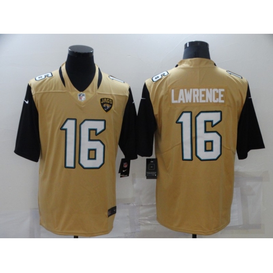 >Men's Jacksonville Jaguars #16 Trevor Lawrence Yellow Draft First Round Pick Limited Jersey
