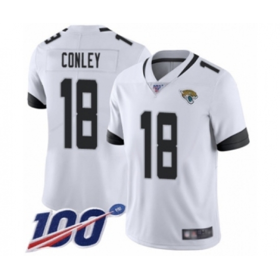 Men's Jacksonville Jaguars #18 Chris Conley White Vapor Untouchable Limited Player 100th Season Football Jersey