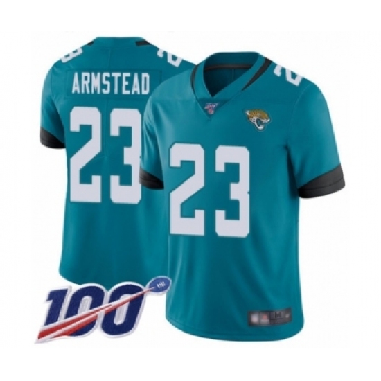 >Men's Jacksonville Jaguars #23 Ryquell Armstead Teal Green Alternate Vapor Untouchable Limited Player 100th Season Football Jersey