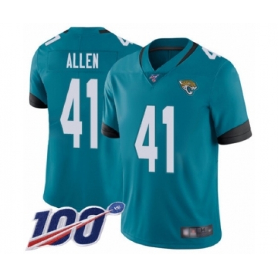 >Men's Jacksonville Jaguars #41 Josh Allen Teal Green Alternate Vapor Untouchable Limited Player 100th Season Football Jersey