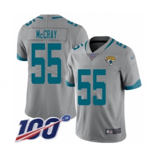 >Men's Jacksonville Jaguars #55 Lerentee McCray Silver Inverted Legend Limited 100th Season Football Jersey