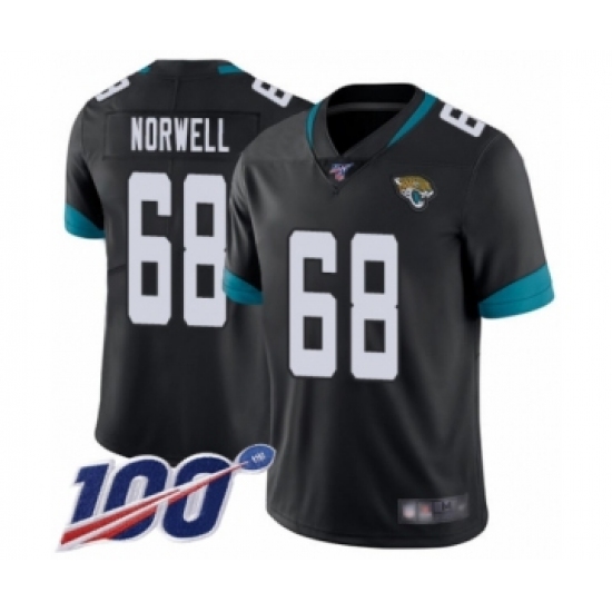 Men's Jacksonville Jaguars #68 Andrew Norwell Black Team Color Vapor Untouchable Limited Player 100th Season Football Jersey