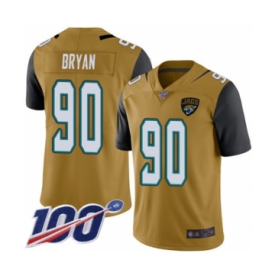 >Men's Jacksonville Jaguars #90 Taven Bryan Limited Gold Rush Vapor Untouchable 100th Season Football Jersey