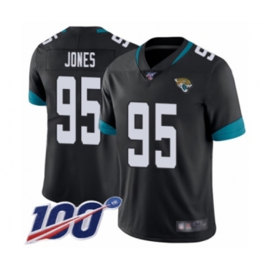 >Men's Jacksonville Jaguars #95 Abry Jones Black Team Color Vapor Untouchable Limited Player 100th Season Football Jersey