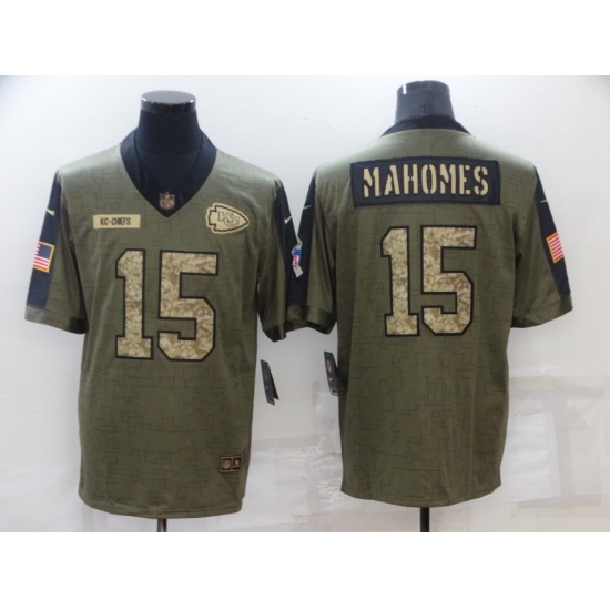 Men's Kansas City Chiefs #15 Patrick Mahomes 2022 Olive Salute To Service Limited Stitched Jersey