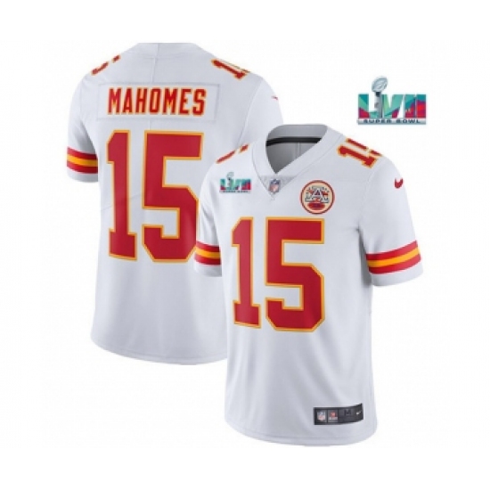 Men's Kansas City Chiefs #15 Patrick Mahomes White Super Bowl LVII Patch Vapor Untouchable Limited Stitched Jersey