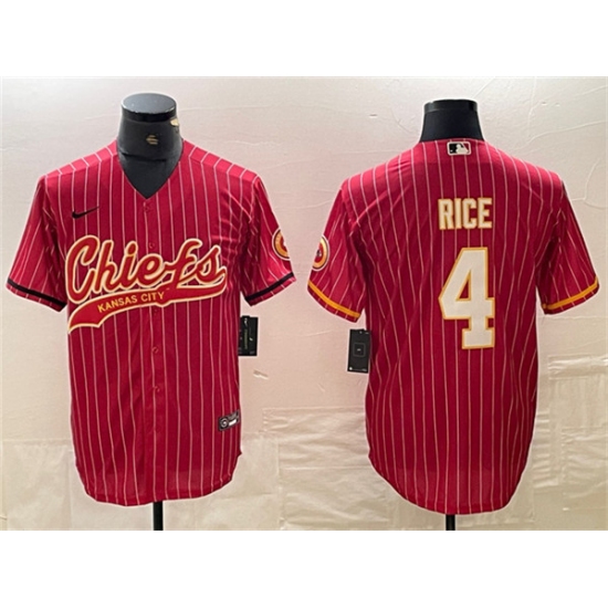 Men's Kansas City Chiefs #4 Rashee Rice Red Cool Base Stitched Baseball Jersey