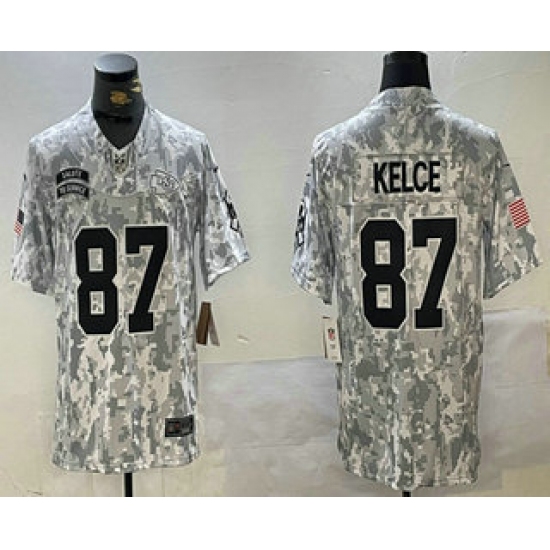 Men's Kansas City Chiefs #87 Travis Kelce 2024 Arctic Camo Salute To Service Stitched Baseball Jerseys