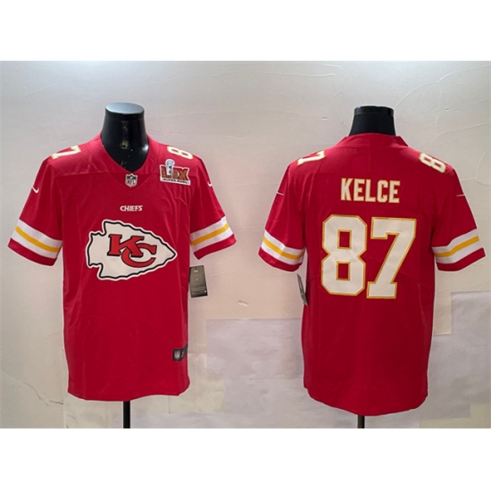 Men's Kansas City Chiefs #87 Travis Kelce Red 2025 Super Bowl LIX Team Big Logo Vapor Limited Stitched Football Jersey