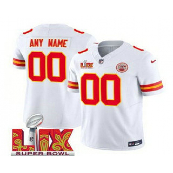Men's Kansas City Chiefs Customized White 2025 Super Bowl LIX FUSE Vapor Limited Jersey