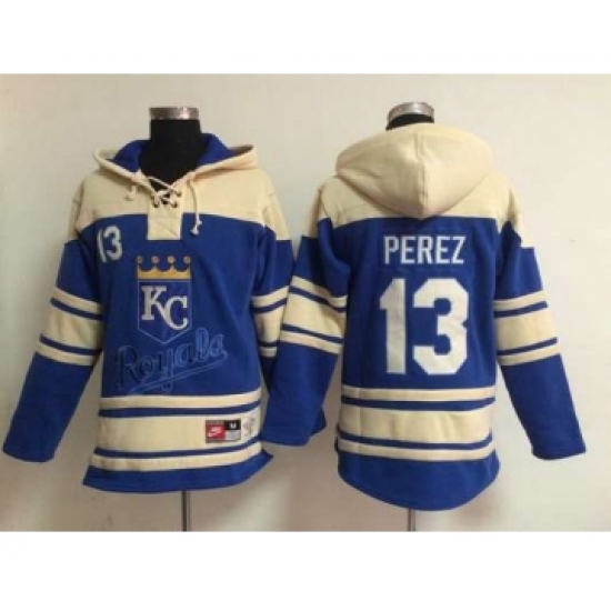 >Men's Kansas City Royals #13 Salvador Perez Blue Hoodie