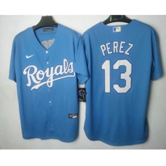 Men's Kansas City Royals #13 Salvador Perez Light Blue Cool Base Stitched MLB Jersey