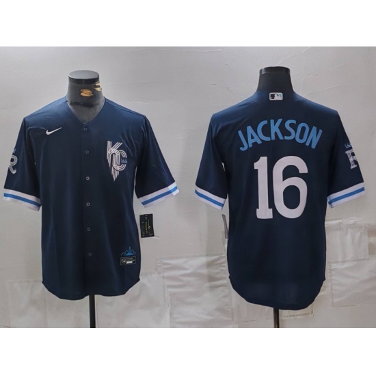 >Men's Kansas City Royals #16 Bo Jackson Navy City Connect Cool Base Stitched Jersey