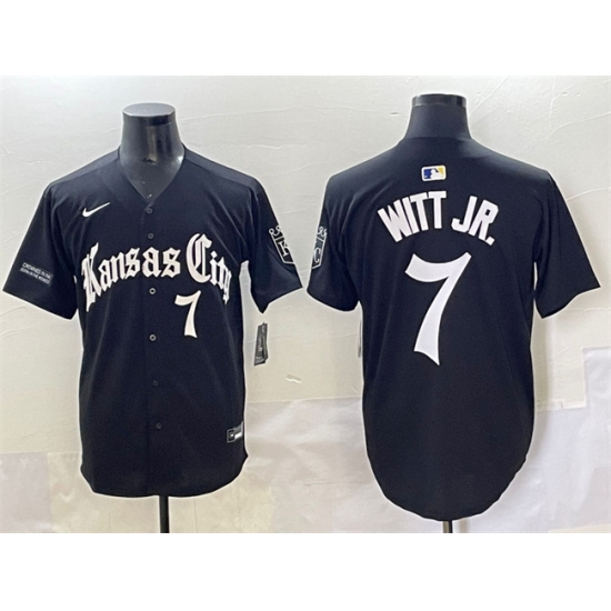 Men's Kansas City Royals #7 Bobby Witt Jr. Black 'Gothic Crown Edition' Vapor Premier Limited Stitched Baseball Jersey