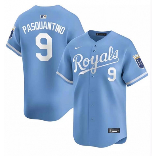>Men's Kansas City Royals #9 Vinnie Pasquantino Light Blue Alternate Limited Stitched Baseball Jersey