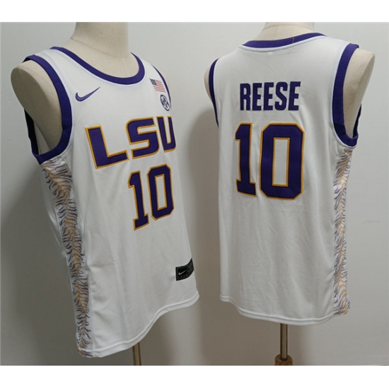 Men's LSU Tigers #10 Angel Reese White Stitched Jersey
