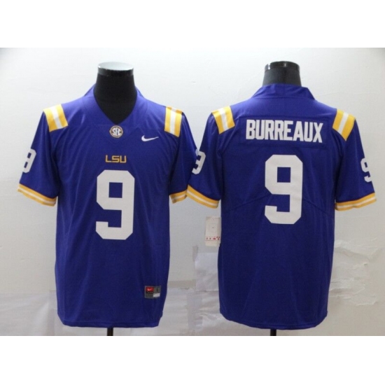 >Men's LSU Tigers #9 Burreaux Purple College Football Jersey