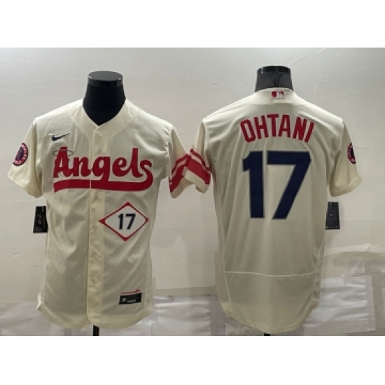 Men's Los Angeles Angels #17 Shohei Ohtani Number Cream 2022 City Connect Flex Base Stitched Jersey
