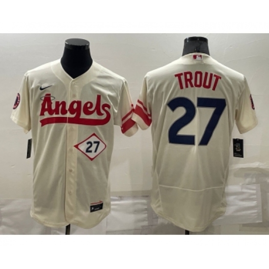 Men's Los Angeles Angels #27 Mike Trout Number Cream 2022 City Connect Flex Base Stitched Jersey