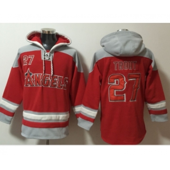Men's Los Angeles Angels Of Anaheim #27 Mike Trout Red Ageless Must Have Lace Up Pullover Hoodie