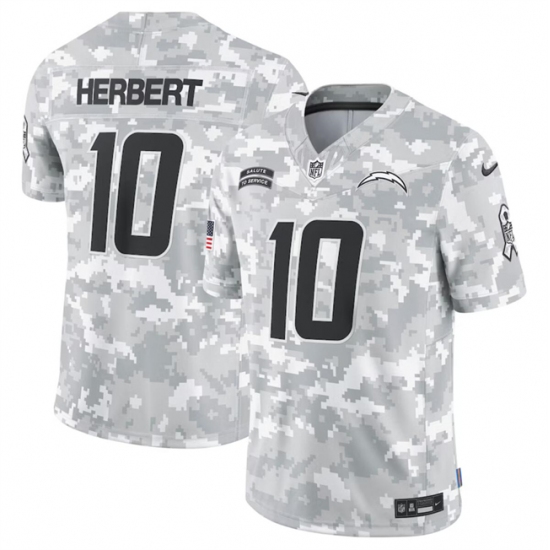 >Men's Los Angeles Chargers #10 Justin Herbert 2024 Arctic Camo Salute To Service Limited Stitched Football Jersey