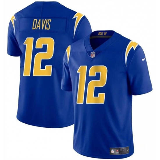 >Men's Los Angeles Chargers #12 Derius Davis Royal 2024 Vapor Limited Football Stitched Jersey