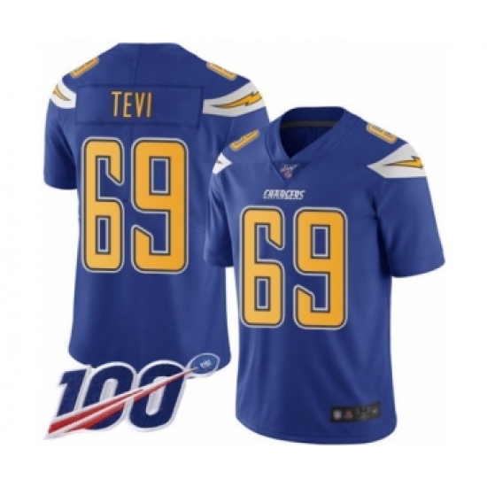 Men's Los Angeles Chargers #69 Sam Tevi Limited Electric Blue Rush Vapor Untouchable 100th Season Football Jersey