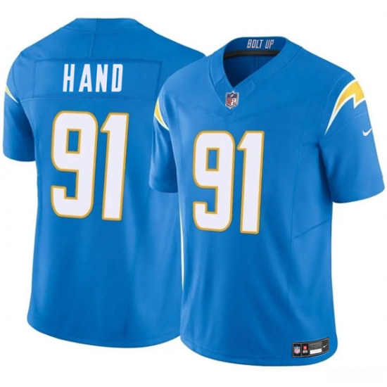 Men's Los Angeles Chargers #91 Da'Shawn Hand Blue 2025 F.U.S.E. Vapor Limited Football Stitched Jersey
