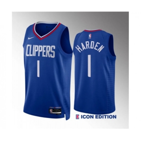 Men's Los Angeles Clippers #1 James Harden Blue Icon Edition Stitched Jersey