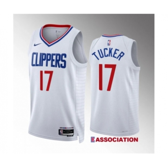 >Men's Los Angeles Clippers #17 P.j. Tucker White Association Edition Stitched Jersey