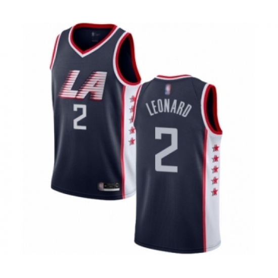 >Men's Los Angeles Clippers #2 Kawhi Leonard Authentic Navy Blue Basketball Jersey - City Edition