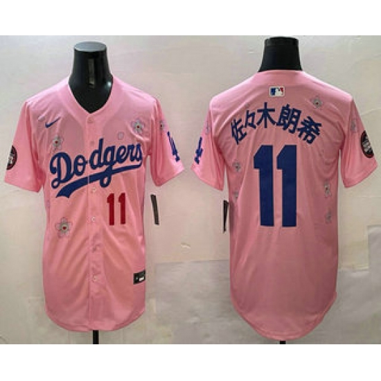 Men's Los Angeles Dodgers #11 佐々木朗希 Pink Japanese 2025 Tokyo Series Limited Jersey