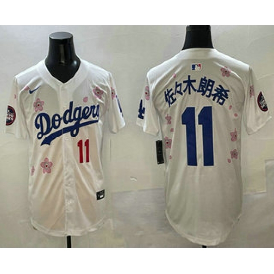 >Men's Los Angeles Dodgers #11 佐々木朗希 White Japanese 2025 Tokyo Series Limited Jersey
