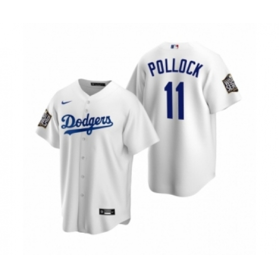 >Men's Los Angeles Dodgers #11 A.J. Pollock White 2020 World Series Replica Jersey