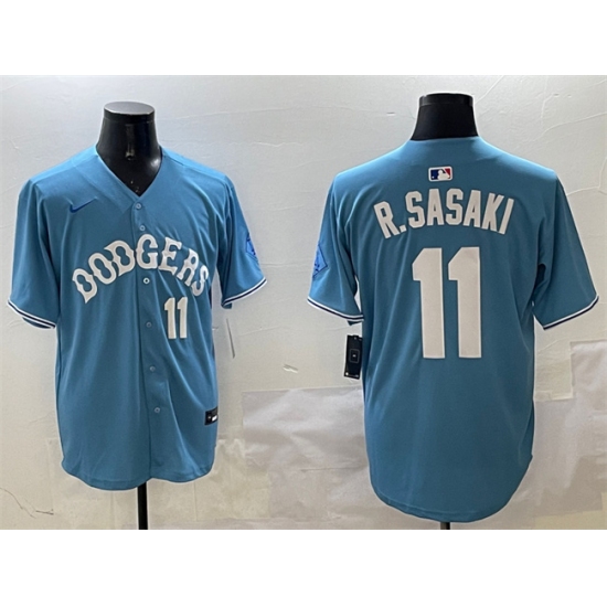 Men's Los Angeles Dodgers #11 Roki Sasaki Light Blue Limited Stitched Baseball Jersey