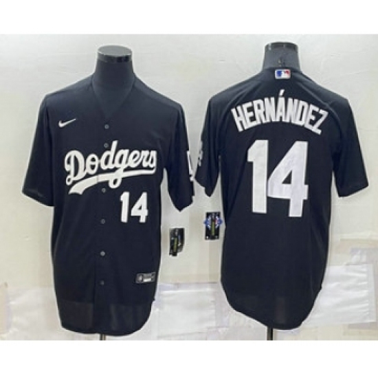 Men's Los Angeles Dodgers #14 Enrique Hernandez Number Black Turn Back The Clock Stitched Cool Base Jersey