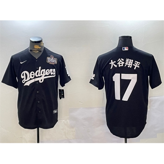 Men's Los Angeles Dodgers #17 大谷翔平 Black 2024 World Series Cool Base Stitched Baseball Jersey