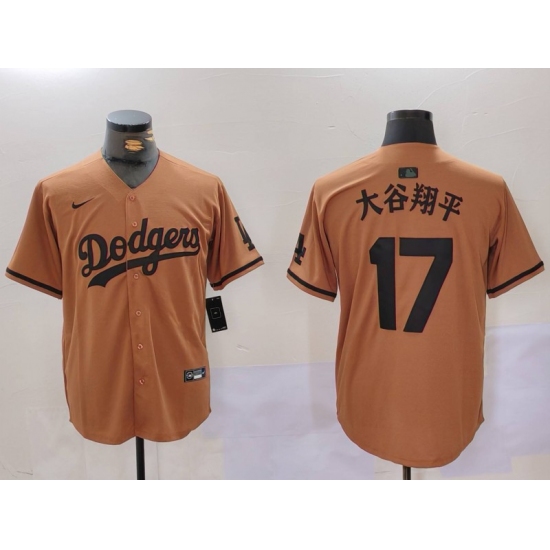 Men's Los Angeles Dodgers #17 太谷翔平 Brown Cool Base Stitched Baseball Jerseys