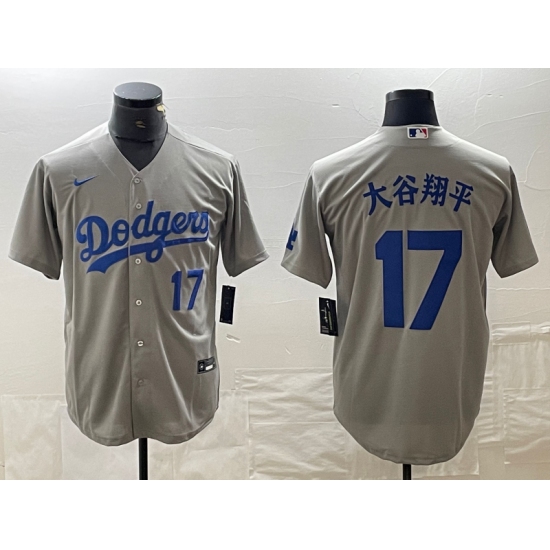 Men's Los Angeles Dodgers #17 大谷翔平 Number Grey Cool Base Stitched Jersey