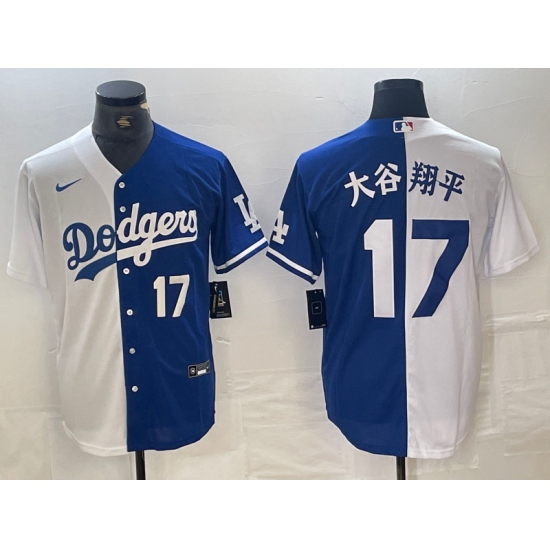 >Men's Los Angeles Dodgers #17 大谷翔平 Number White Blue Two Tone Stitched Baseball Jerseys