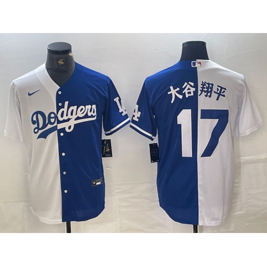 >Men's Los Angeles Dodgers #17 大谷翔平 White Blue Two Tone Stitched Baseball Jersey