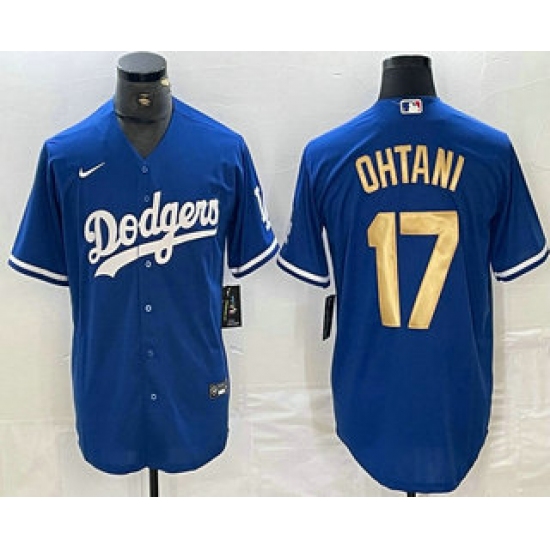 Men's Los Angeles Dodgers #17 Shohei Ohtani Blue Gold Stitched Cool Base Nike Jersey