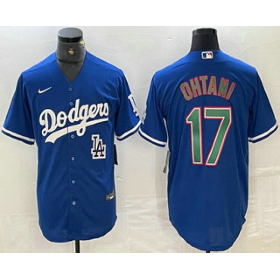 >Men's Los Angeles Dodgers #17 Shohei Ohtani Blue Green Stitched Cool Base Nike Jersey